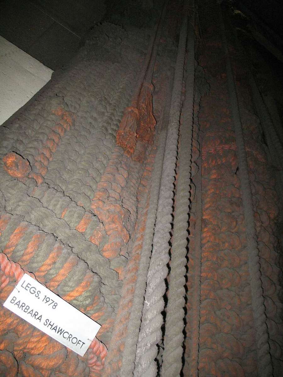 "Legs," the 50-foot-tall, 7,000-pound rope sculpture that has hung on the east wall of the station since it opened in 1976, will be carefully dismantled, removed from the station and returned to its creator, noted textile artist Barbara Shawcroft, 84, who lives in Davis.