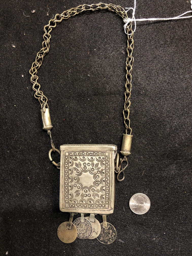 #J116 - Necklace, metal chain, box, coins